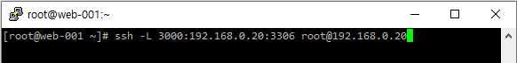 ssh -L 3000:192.168.0.20:3306 root@192.168.0.20