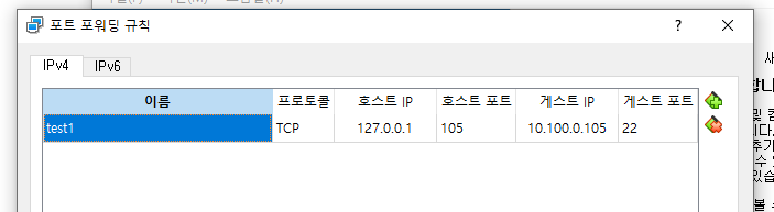 이름 프로토콜 호스트IP 호스트 포트 게스트IP 게스트포트