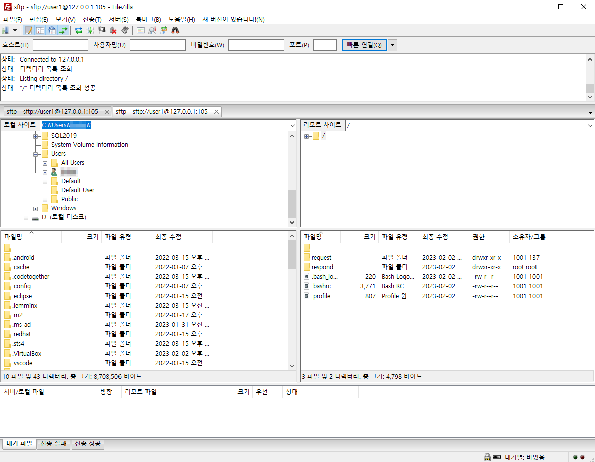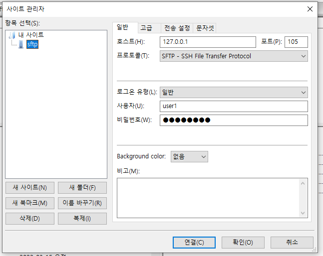 ※우분투에 sftp용 사용자(user1)를 미리 만들어야한다.