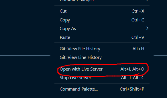 -원하는 페이지에서 오른쪽마우스 클릭하고 Open with Live Server를 클릭